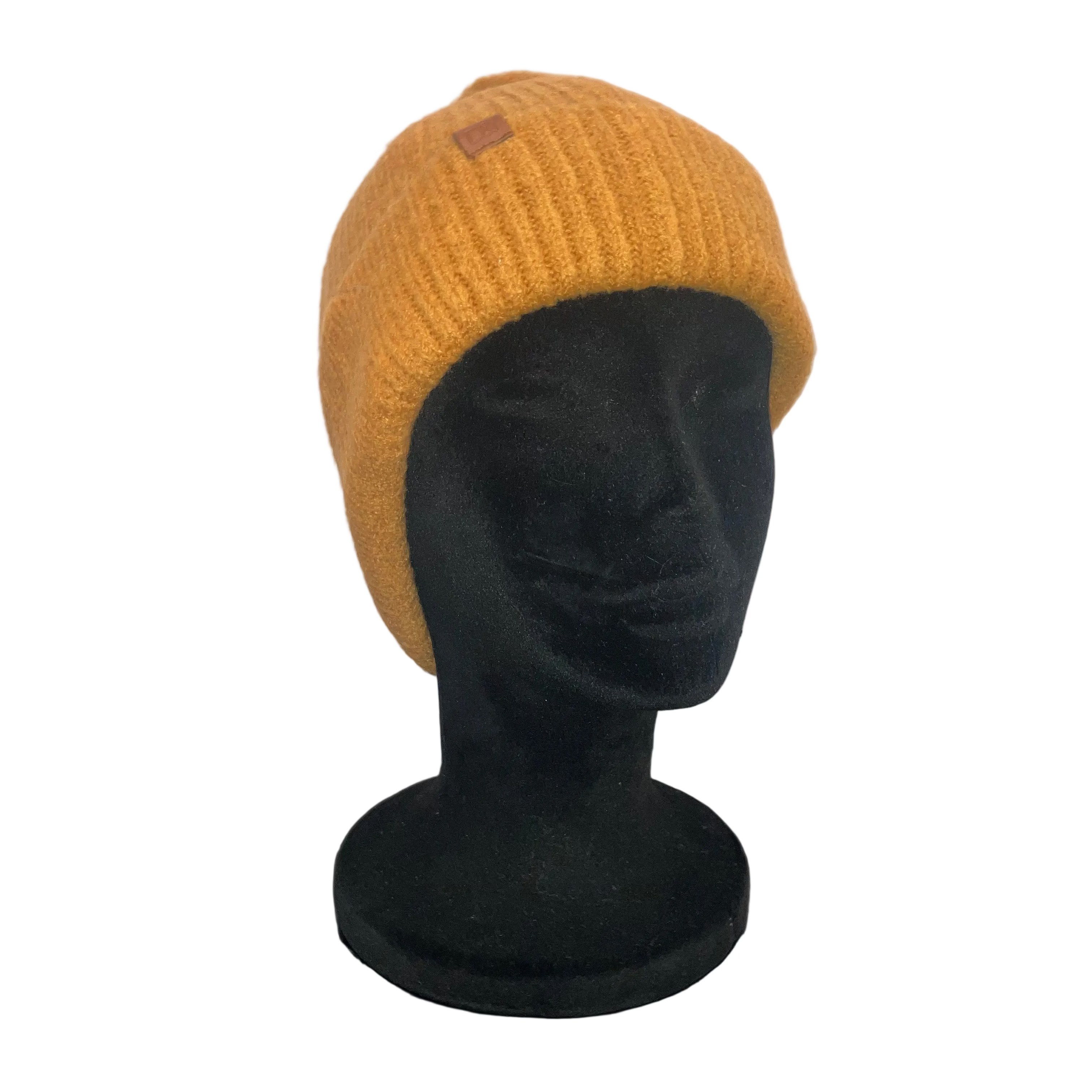Beanie w/ Leather Tab - Mustard